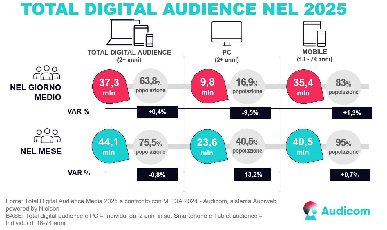 Consulta i dati di scenarioComunicati stampaSono disponibili i dati della total digital audience del mese di Ottobre 2025Approfondisci